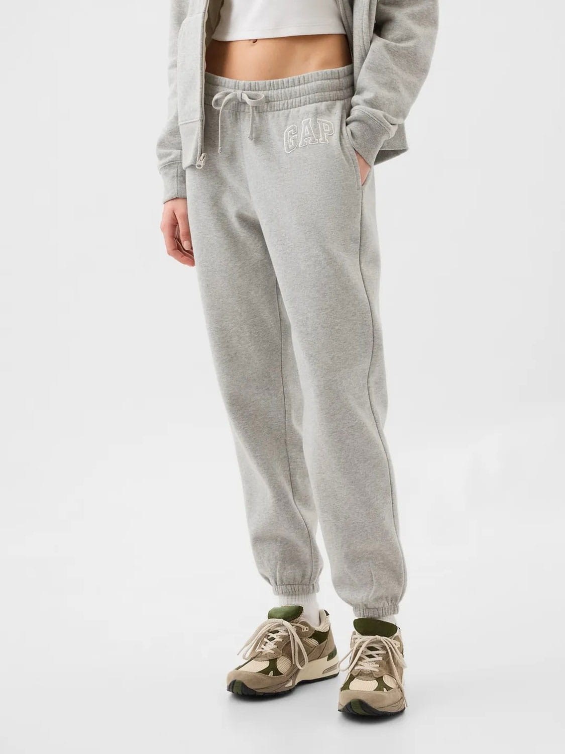 GAP Spodnie dresowe z logo i polarem jasnoszare
