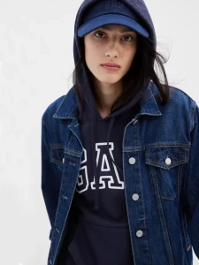 GAP bluza damska granatowa. Zakładana przez głowę, z kapturem wykończonym ładną tasiemką. Z przodu bluzy naszywane logo GAP. Dół i rękawy zakończone ściągaczem. Produkty GAP charakteryzuje wysoka jakość i precyzyjne wykonanie.
