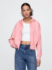Damska bluza z kapturem i zamkiem na całej długości. Uszyta jest z miękkiej oddychającej bawełny typu French Terry zapewniającej komfort przez cały dzień. Zewnętrzna strona gładka i przyjemna w dotyku. Kaptur ze ściągaczem, zamek na całej długości, oraz kieszeń kangurka są funkcjonalne i stylowe .Produkty GAP są doskonale uszyte.