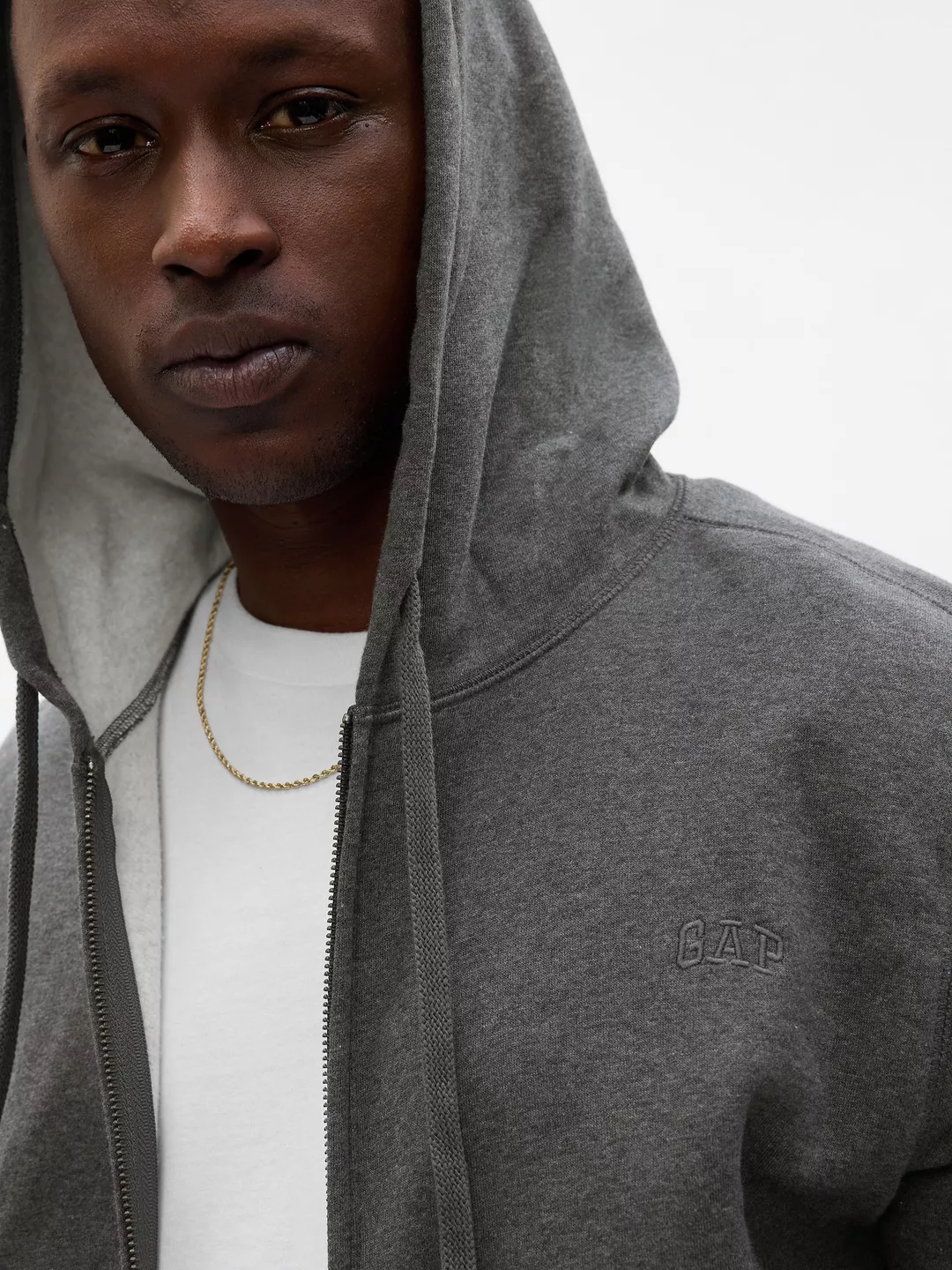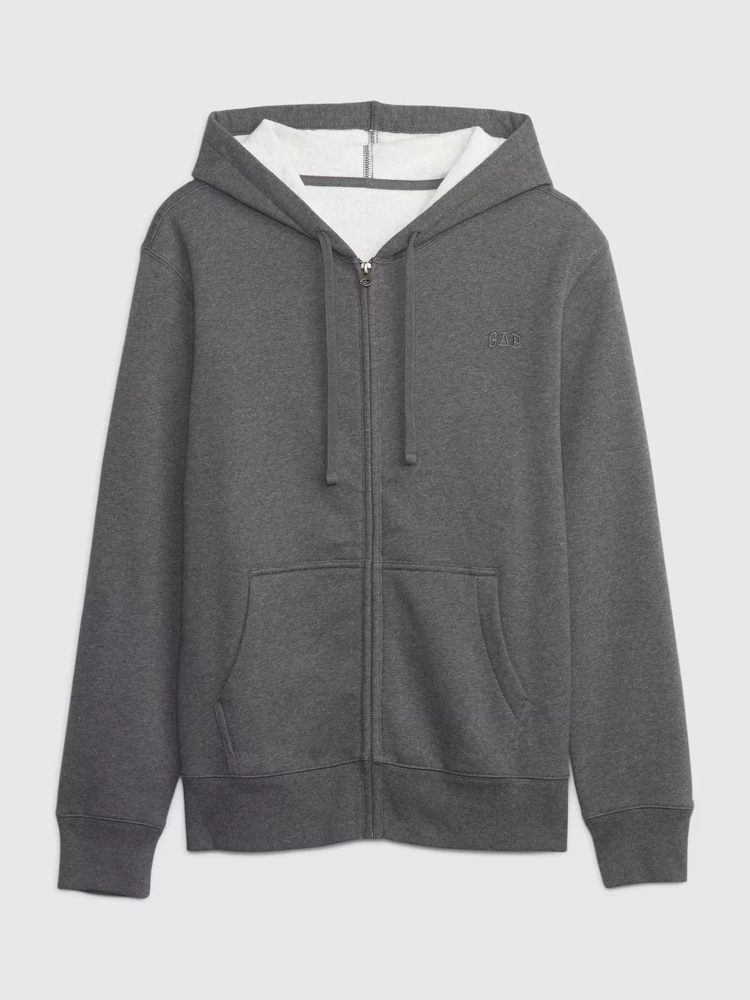 GAP bluza męska ciemnoszara. Bardzo prosta, klasyczna bluza. Zapinana na suwak, kaptur ze sznurkiem ściągającym, dzielona kieszeń typu kangur, miękka dzianina bawełniana. Prawie niewidoczne logo GAP na lewej pole. Produkty GAP charakteryzują się wysoką jakością i precyzją wykonania.
