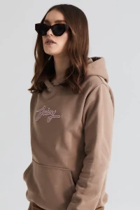 Bluza w kolorze cappuccino to żywsza wersja brązu. Z przodu kontrastowy haft JUICY w kolorze różowym. Jesienne kolory to zdecydowanie MUST HAVE na obecny okres ale bluza idealnie sprawdzi się także podczas chłodniejszych letnich wieczorów.