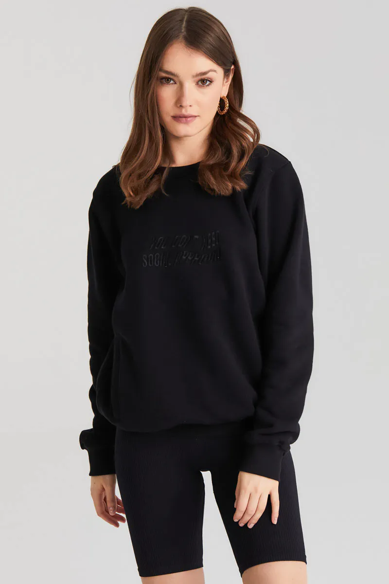 Nie możesz przekonać się do koloru? W Twojej szafie króluje czarny? Pomyśleliśmy też o Tobie! Crewneck w kolorze czarnym również skompletujesz z spodniami LAZY lub BAGGY. Wykonany z bardzo dobrej jakości bawełny - od środka wykończony "misiem" dzięki czemu bluza jest bardzo przyjemna w noszeniu. Haft YOU DON’T NEED SOCIAL APPROVAL również w kolorze czarnym.