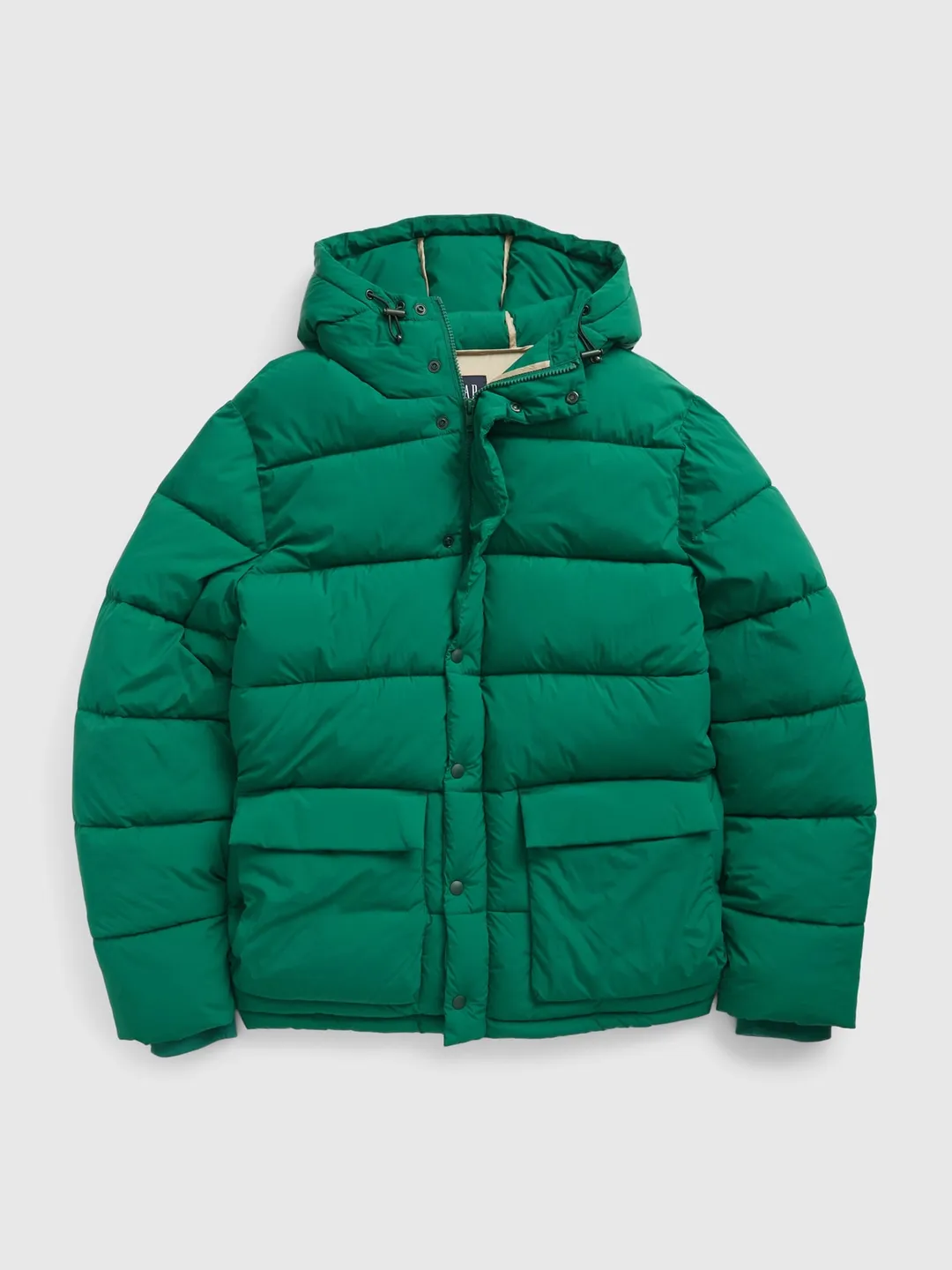 Kurtka posiada zapięcie na zamek błyskawiczny, osłonięte dodatkową klapą na zatrzaski. Wysoka stójka płynnie przechodzi w zintegrowany kaptur, zapewniając kompleksową ochronę. Dwie duże kieszenie z klapkami z przodu są zarówno stylowe, jak i praktyczne. W trosce o środowisko, podszewka kurtki została wykonana w 100% z nylonu pochodzącego z recyklingu.