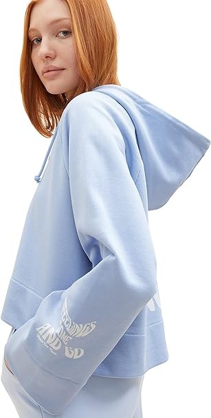 Bluza uszyta z najlepszej jakości bawełny. Duzy kaptur wykończony sznurkiem ściągającym w tym samym kolorze. Rozszerzane modne rękawy, na lewym nadruk "feelings come and go". Tył lekko przedłużany. Boki rozcięte.