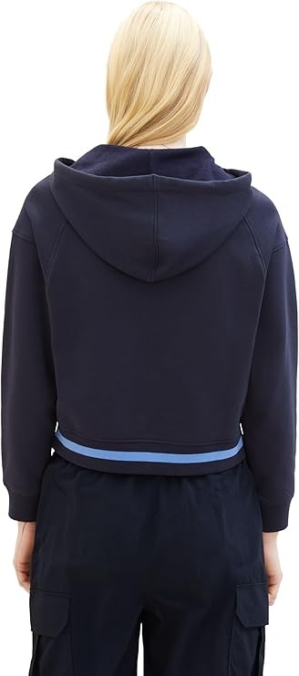 Bluza damska granatowa z kapturem, zakładana przez głowę. TOM TAILOR to marka zapewniająca wysoki komfort noszenia i optymalne dopasowanie.