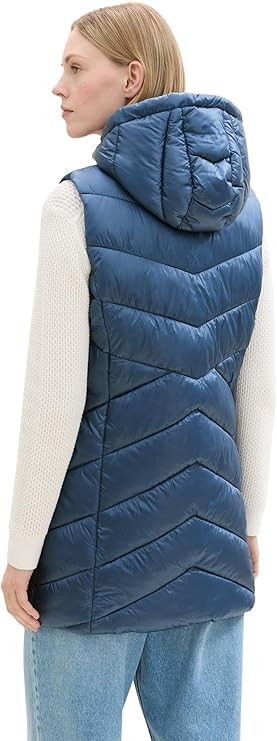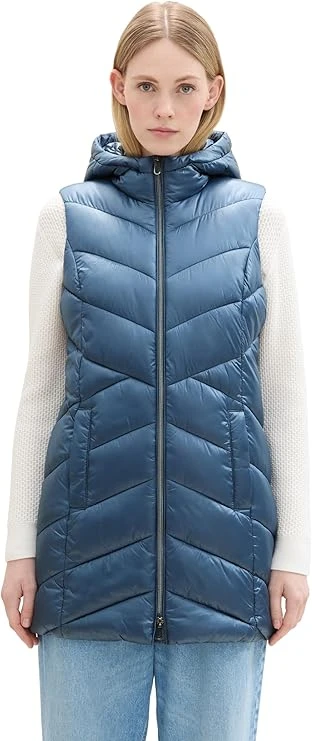 Kamizelka damska TOM TAILOR zapinana na suwak z kapturem, boczne kieszenie zakryte plisą. Bardzo lekka i delikatna Optymalne dopasowanie Slim Fit, wysoki standard noszenia. Wykonana w 100% z poliamidu z ociepleniem TOM TAILOR to międzynarodowa marka niemieckiego projektanta.