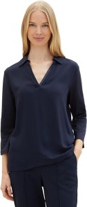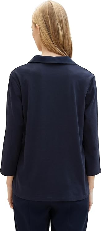 Koszulka damska TOM TAILOR granatowa, rękaw 3/4 z kołnierzykiem polo i dekoltem w serek. Optymalne dopasowanie i komfort noszenia. TOM TAILOR to międzynarodowa firma niemieckiego projektanta.