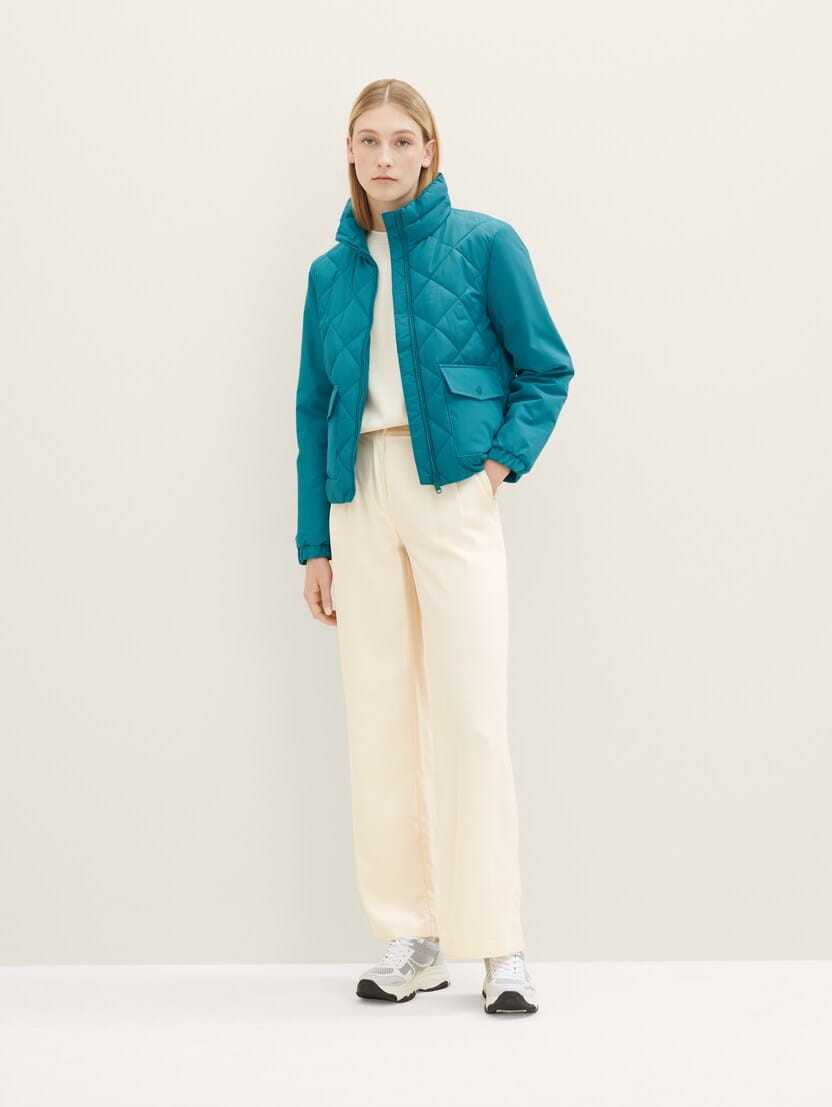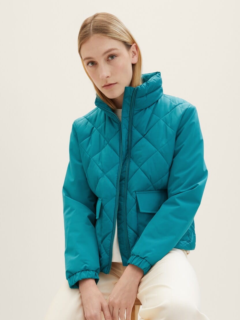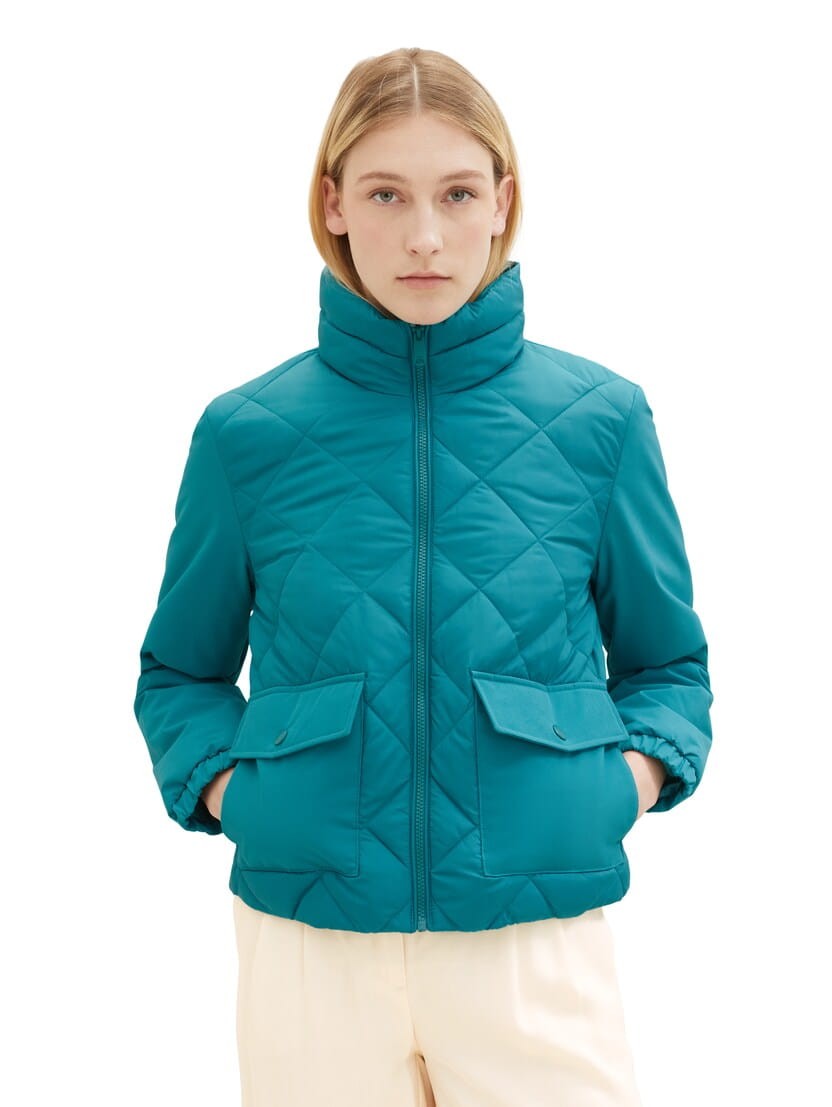 TOM TAILOR kurtka damska morska.Pudełkowa kurtka pikowana z przodu.Rękawy gładkie wykończone gumką.Zapinana na suwak w jednolitym kolorze.Spore nakładane kieszenie dodają stylu i uroku.Wysoka stójka skutecznie chroni przed wiatrem i chłodem.