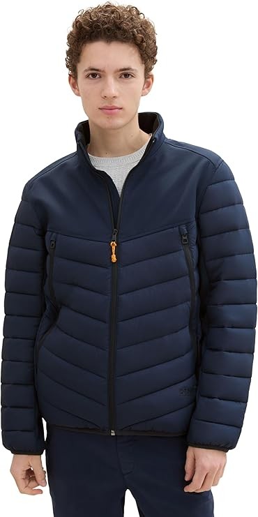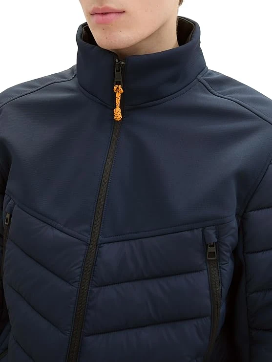 Kurtka męska w kolorze granatowym TOM TAILOR zapinana na suwak błyskawiczny, stojący kołnierz, boczne długie wszywane kieszenie zapinane na suwak. Wykonana w 100% z poliestru, hybrydowa. Optymalne dopasowanie, wysoki standard noszenia. TOM TAILOR to międzynarodowa marka niemieckiego projektanta.