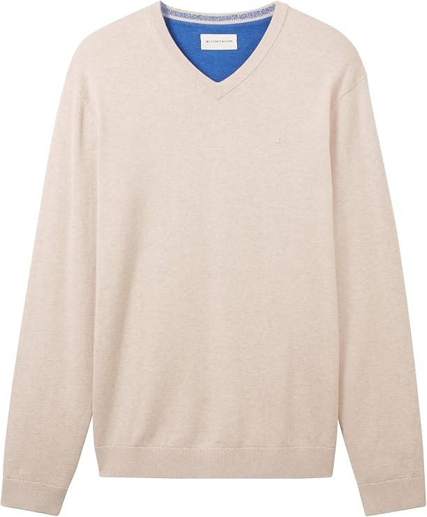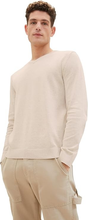 Sweter męski w kolorze beżowym TOM TAILOR z dekoltem w serek, z małym haftem logo na piersi. Wykonany z miękkiej dzianiny, 100% bawełny. Optymalne dopasowanie, wysoki standard noszenia, do stylizacji przez cały rok. TOM TAILOR to międzynarodowa marka niemieckiego projektanta.