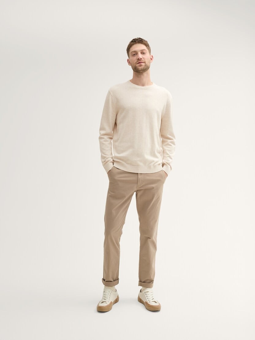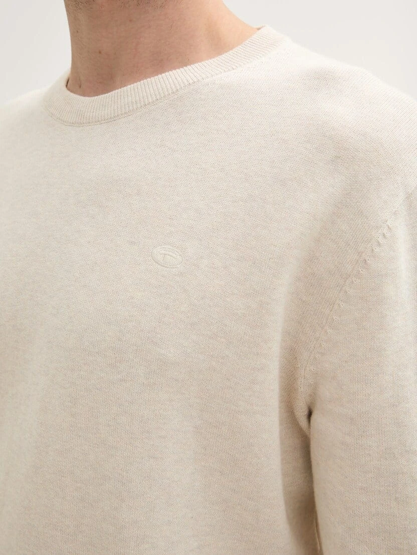Sweter męski TOM TAILOR beżowy z okrągłym dekoltem.