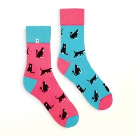 Kolorowe zabawne skarpetki z wizerunkiem kotków.
